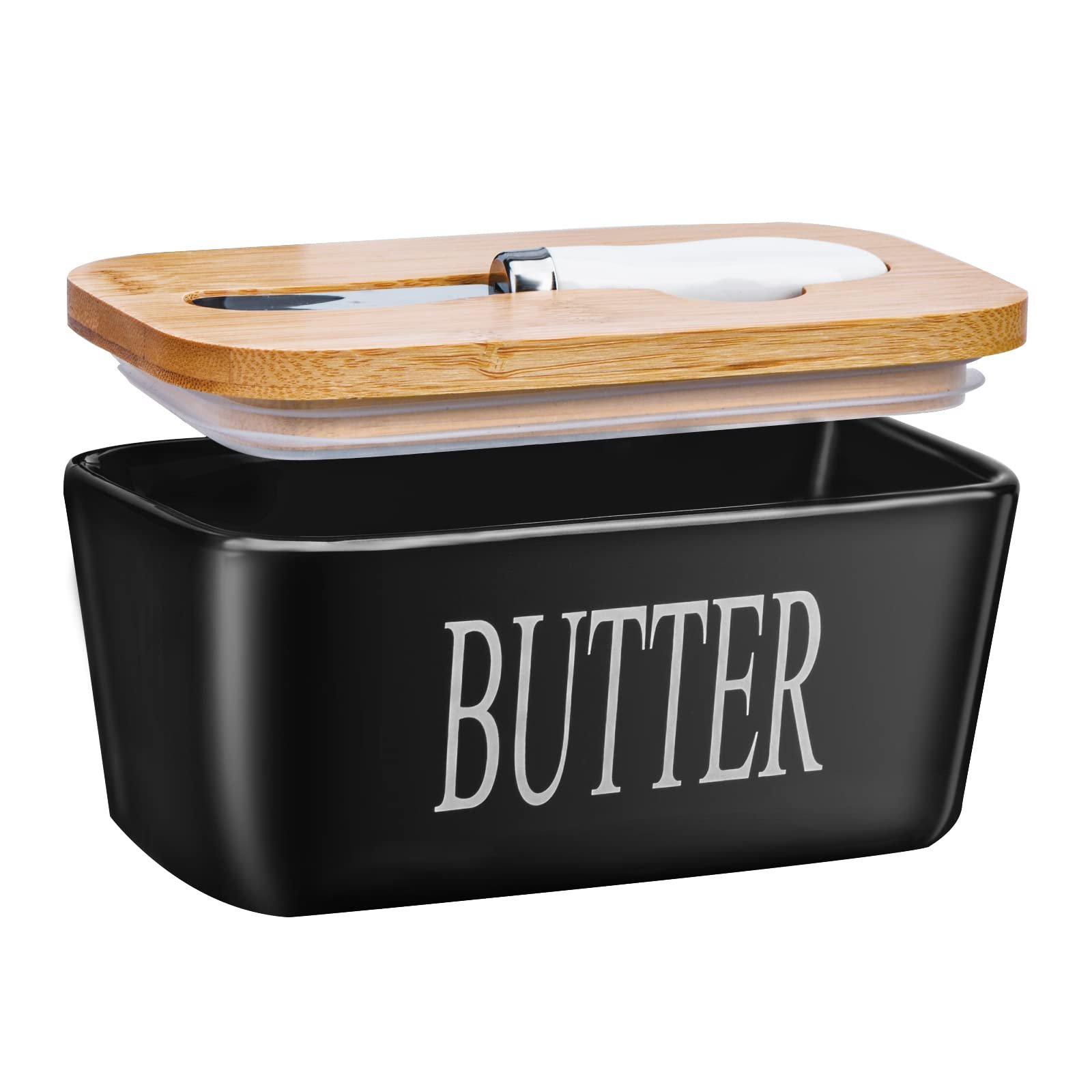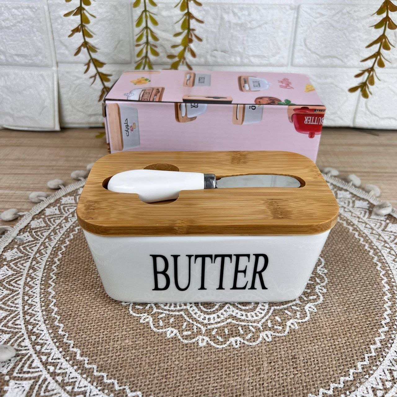 - طبق زبدة من السيراميك عالي الجودة، مقاوم للتشقق والصدأ
